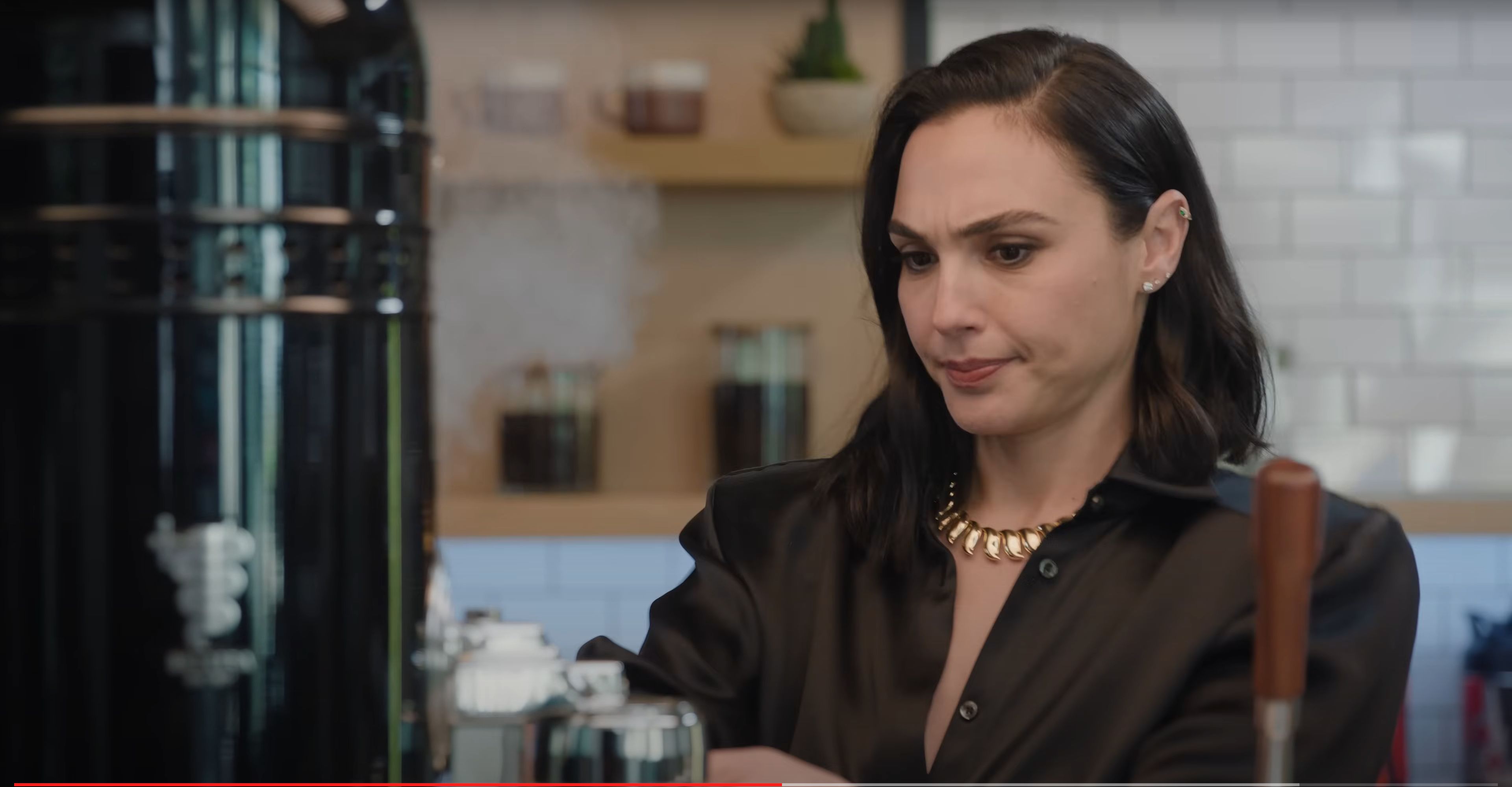 Gal Gadot using a Bezzera Verticale Black Eagle 2 Group Coffee Machine